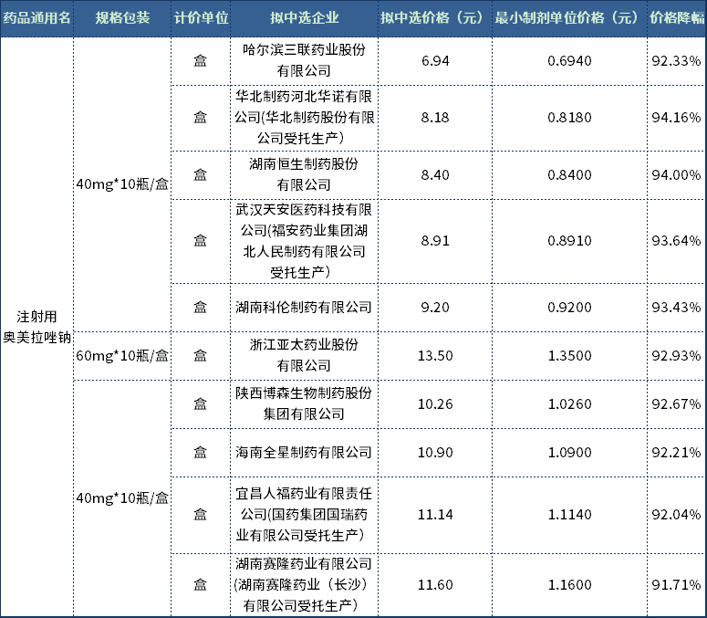 03 最卷品種“奧美拉唑”這10家中標(biāo)